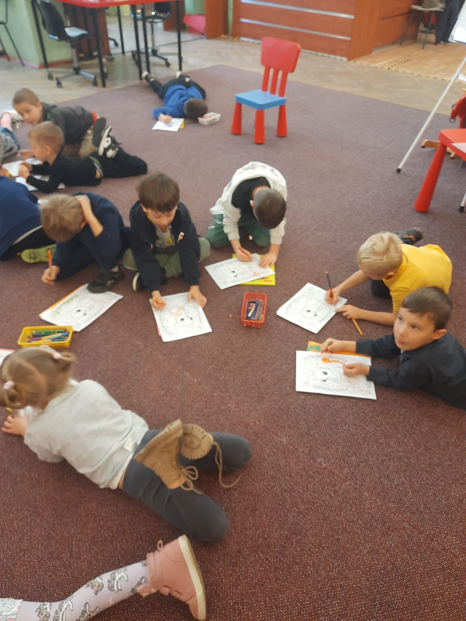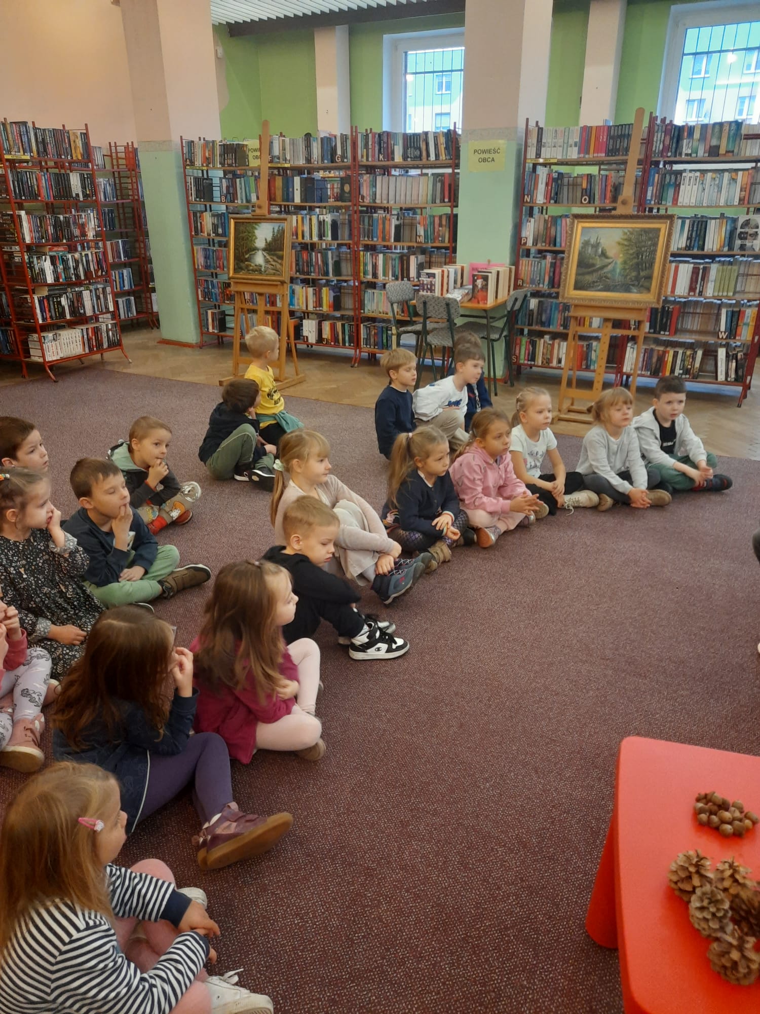 17 listopada przedszkolaki z Borowików, mimo niesprzyjającej pogody,  uczestniczyły w warsztatach bibliotecznych: Jesień w literaturze.