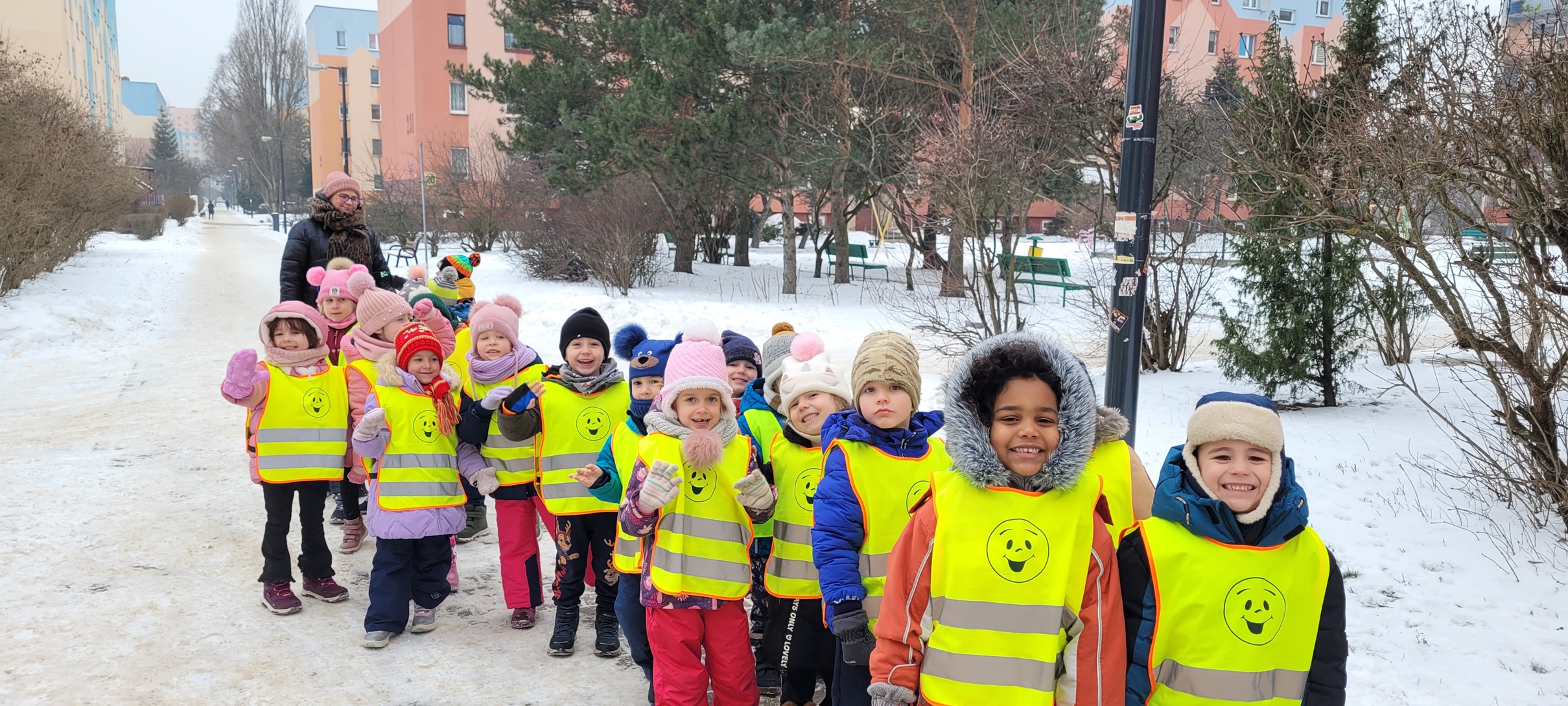 Korzystając z zimowej aury, w dniu 7 stycznia, Zajączki wybrały się na spacer po okolicach przedszkola. Podziwianie uroków zimy podczas spaceru, wprawiło wszystkich w doskonałe nastroje.