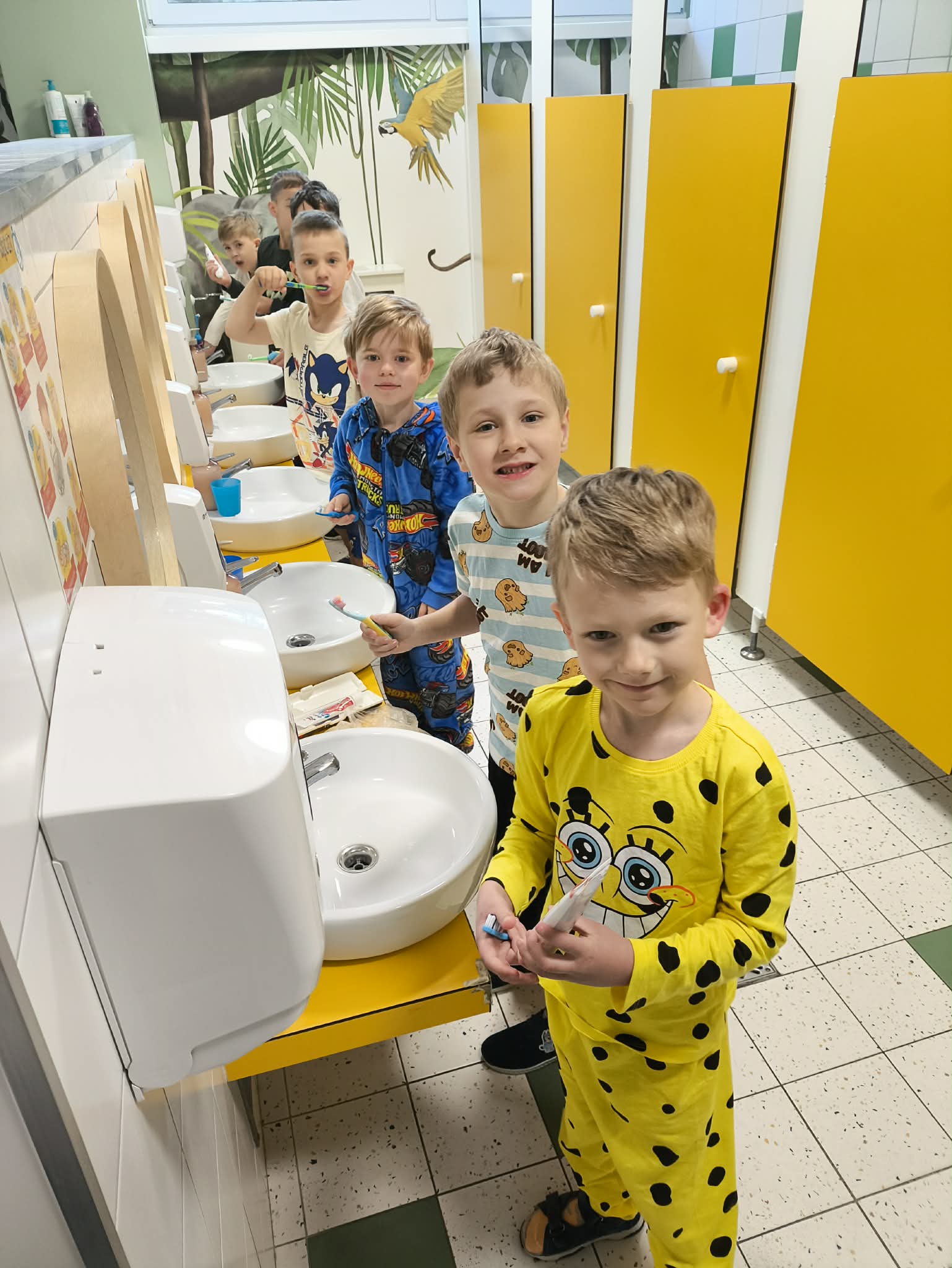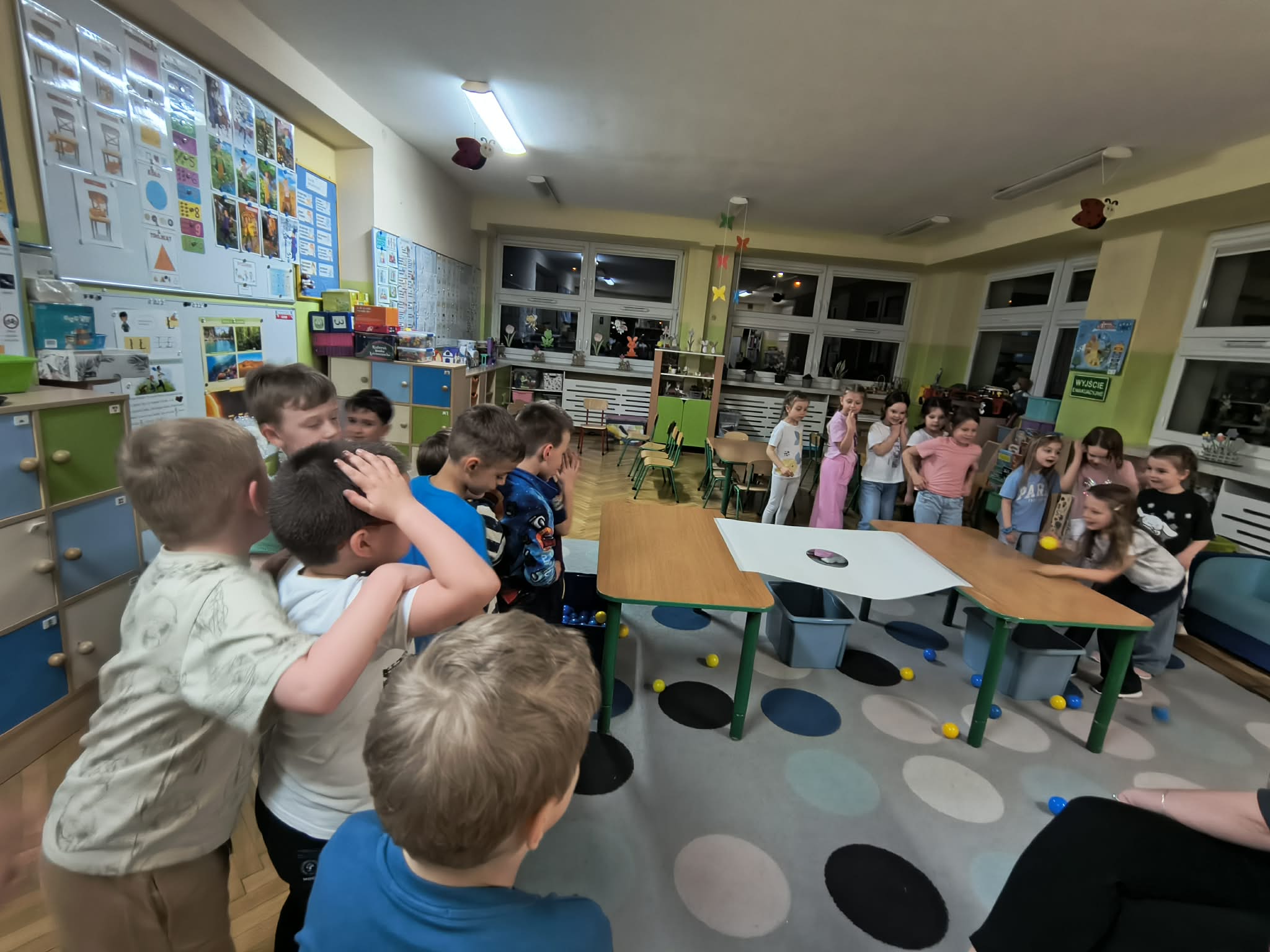 Nocowanka w przedszkolu to wyjątkowe wydarzenie, które na długo zostaje w pamięci dzieci. To nie tylko świetna zabawa i mnóstwo radości, ale przede wszystkim czas budowania relacji- zarówno między koleżankami i kolegami z grupy, jak i wzmacnianie więzi z nauczycielkami. Podczas wspólnego wieczoru nie zabrakło różnorodnych konkurencji, zabaw i aktywności, które sprzyjały współpracy i rozwijaniu dziecięcej samodzielności. Szczególną frajdę sprawiła dzieciom dyskoteka z kolorowymi światełkami i kulą, która stworzyła prawdziwą atmosferę. Dziękujemy wszystkim za ten piękny czas pełen radości, emocji i wspólnych chwil.