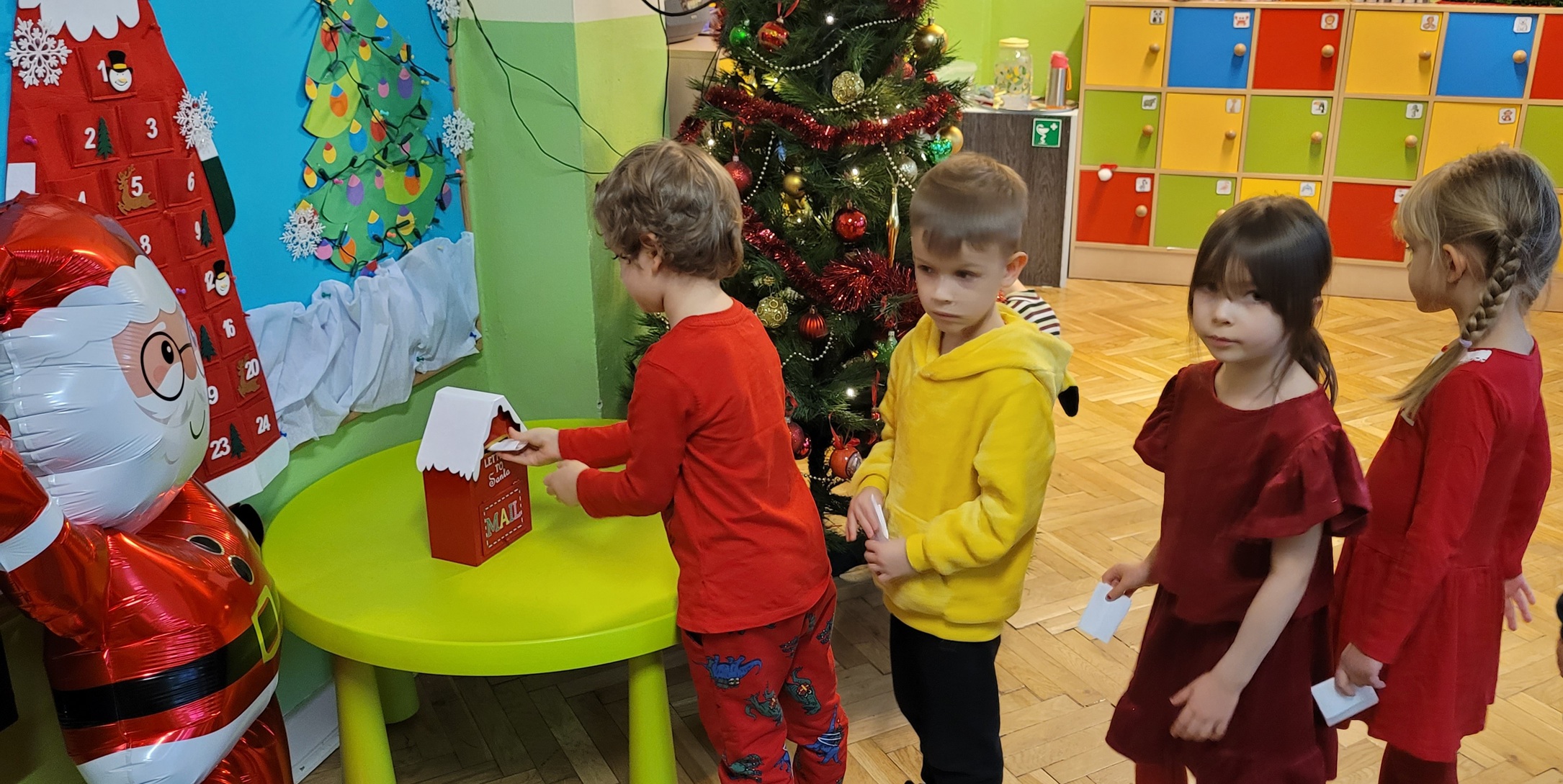 Z okazji Mikołajek, dzieci w grupie Zajączki pisały listy do Świętego Mikołaja, rysując na kartkach wymarzone zabawki. Następnie swoje listy umieściły w specjalnej „Mikołajowej” skrzynce pocztowej. Po Balu Mikołajkowym, naszą klasę odwiedził Święty Mikołaj, który nie tylko wręczył dzieciom drobne upominki, ale także zabrał napisane przez dzieci listy do Świętego Mikołaja. Czy spełni ich gwiazdkowe życzenia? Okaże się w Wigilię.